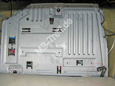 Dazu zuerst die untere Verkleidung unter dem Handschuhfach und dann die Seiten-verkleidungen abnehmen, den Teppichboden hochklappen, die weiße Styroporplatte herausnehmen.