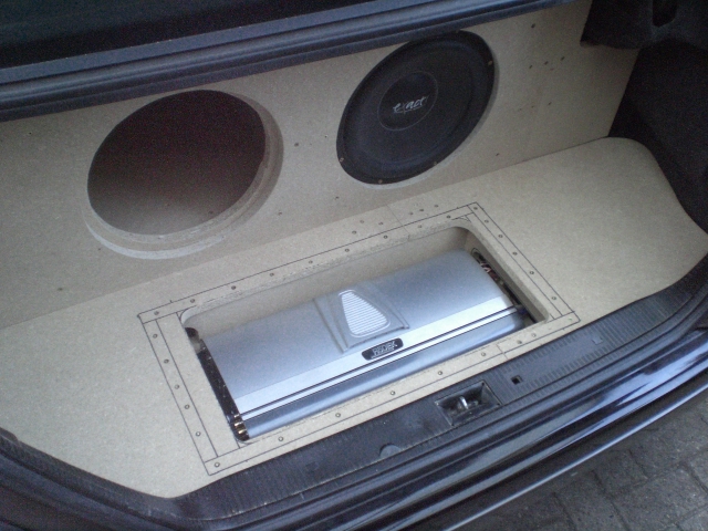 Meine Anfänge von 2002 noch mit Gehäuse, dann kam es weg und der Sub wanderte in eine MDF Platte da ich oft den Kofferraum brauche.