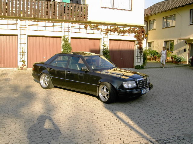 hallo vieleicht intresiert es euch habe mir vor ein paar jahren einen e 420 w 124 gekauft bj 93. habe mich dann ein halbes jahr damit beschäftigt optimale reifen und felgen zu finden. anfragen bei amg,brabus usw blieben erfolglos.hilfe kam von einem freund der eine eigene kfz-werkstatt hat,von dem seinen reifenlieferranten. vorne 8.5 mal 18j 245-35 und 3 cm spurverbreiterung und hinten 10.5 mal 18j 275-30 und 4 cm spurverb. ein wahnsinn vordere kotflügel um 8 cm hintere um 9.5 cm pro seite herausgezogen das heist räder montiert und danach das blech angepast brutal dazu noch h & r federn aber serienmäsige stossdämfer fertig das grösste problem war nicht das blech sondern die plastikteile an der seite. dann habe ich mir noch den hinteren enttopf ganz ausgereumt geiler v 8 sound und 2 bosi endrohre eingeschweisst ende dadurch endstand ein einmaliger 124 breiter als der e 500 habe jetzt einen serienmäsigen e 500 w 211 und bin schon wieder am überlegen als abschluss möchte ich euch sagen es können geile benze entstehen auch ohne die grossen firmen nur mut [nichts gegen amg brabus usw ] euer neues mitglied wu-jun