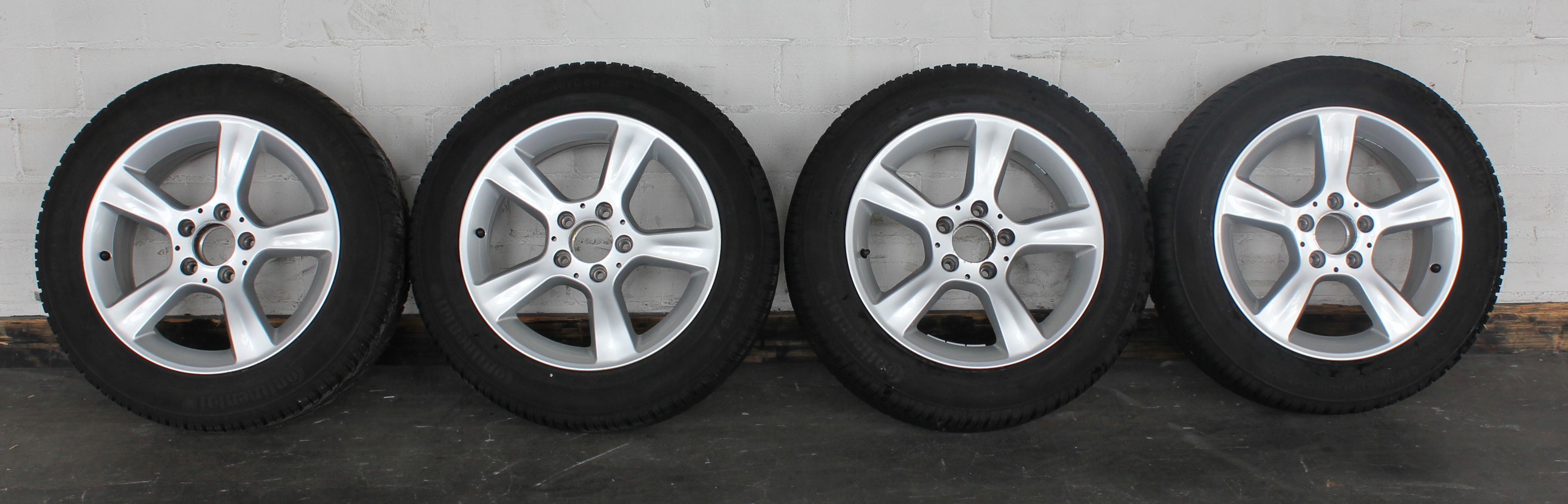 Neuwertige Continental ContiWintercontact TS830 in der Dimensin - 205/55 R 16 91H mit dazugehörigen Alufelgen von Mercedes Benz mit den Maßen - 7J x16 H2 ET31, Lochkreis 5x112, Mercedes Art. Nr. A2034012902