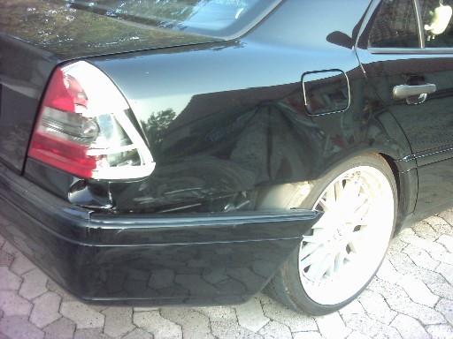 Die Werkstatt wollte das komplette Seitenteil wechseln. Was ja gar nicht so teuer ist. Aber das im Schadensgutachten z.B. 350,-€ für das entfernen, einlagern und wiedereinbauen der Kofferrauminnenverkleidung stand, ließ mich dann doch nachdenklich werden. Eine mir lange bekannte kleine Werkstatt hat es dann im Std.Lohn (30€/STd.) gemacht.
